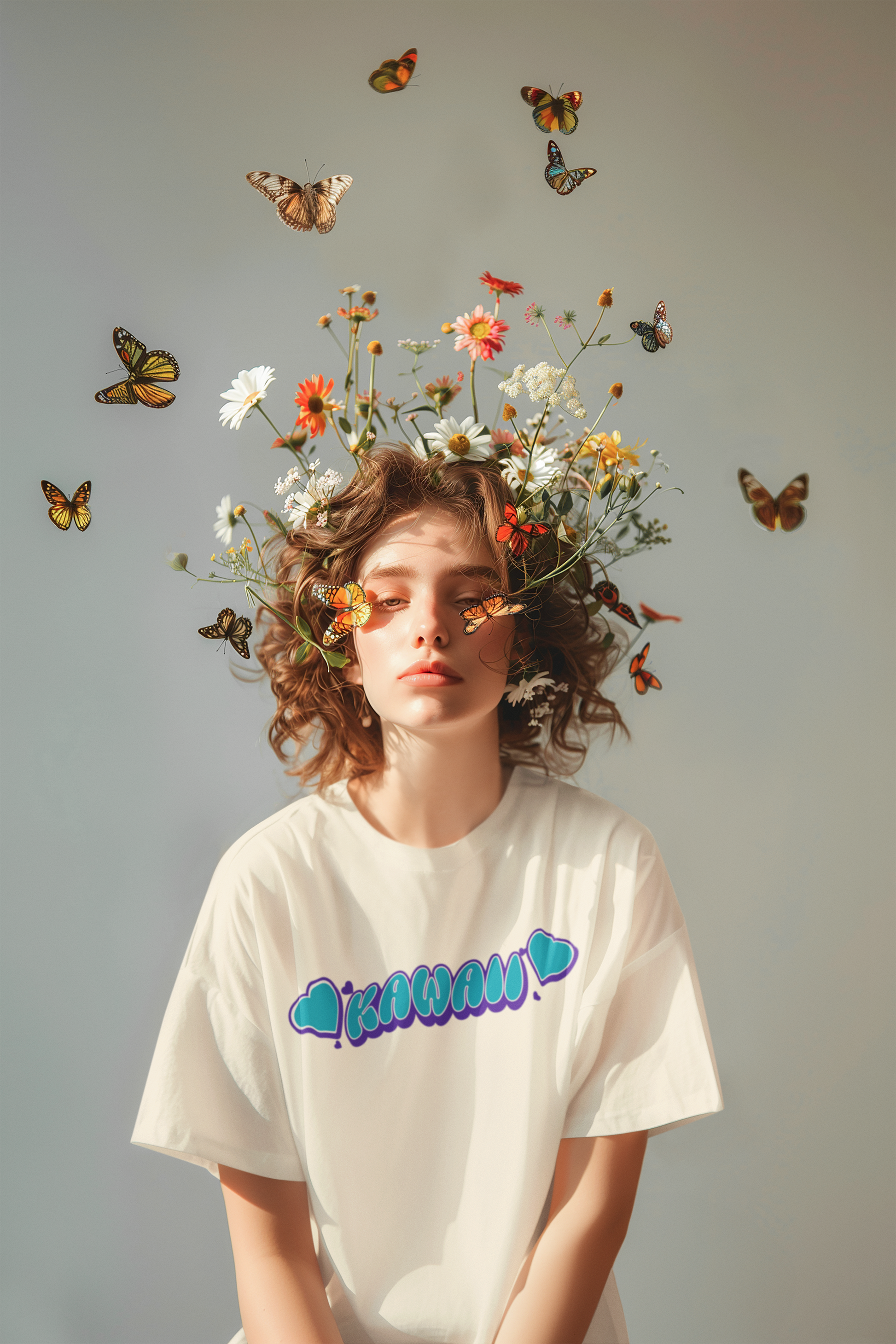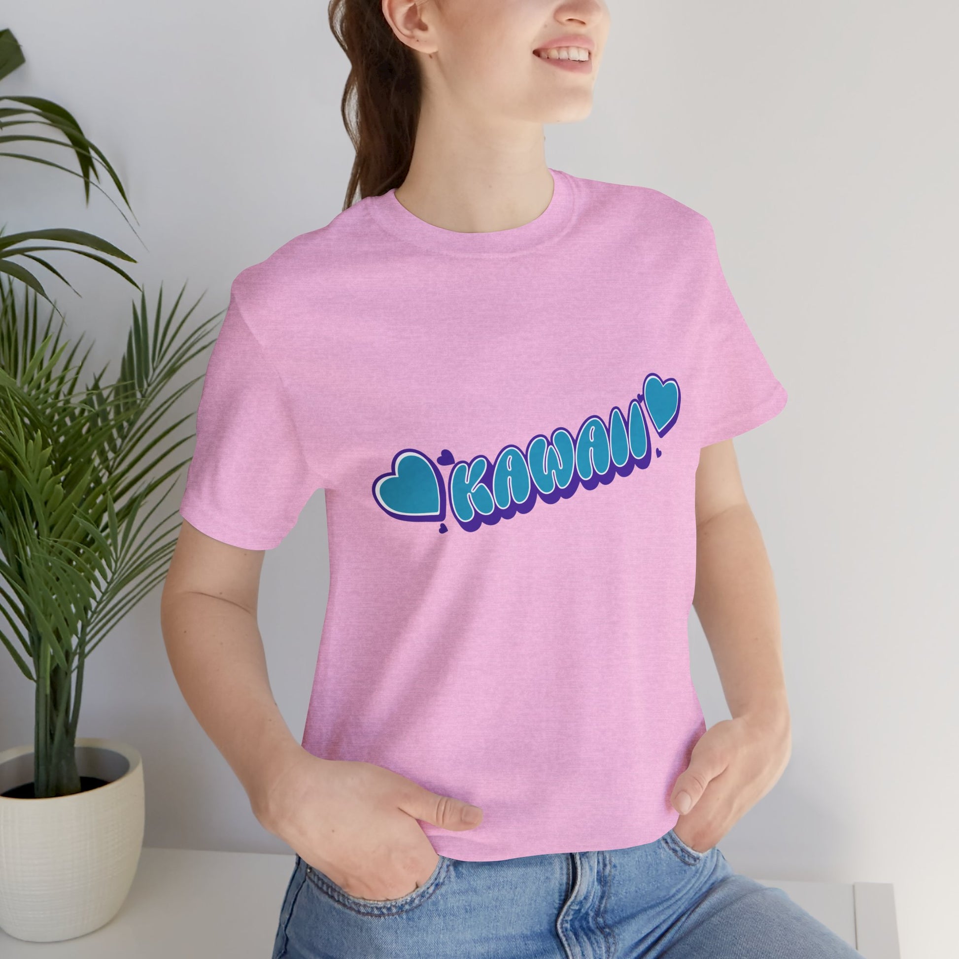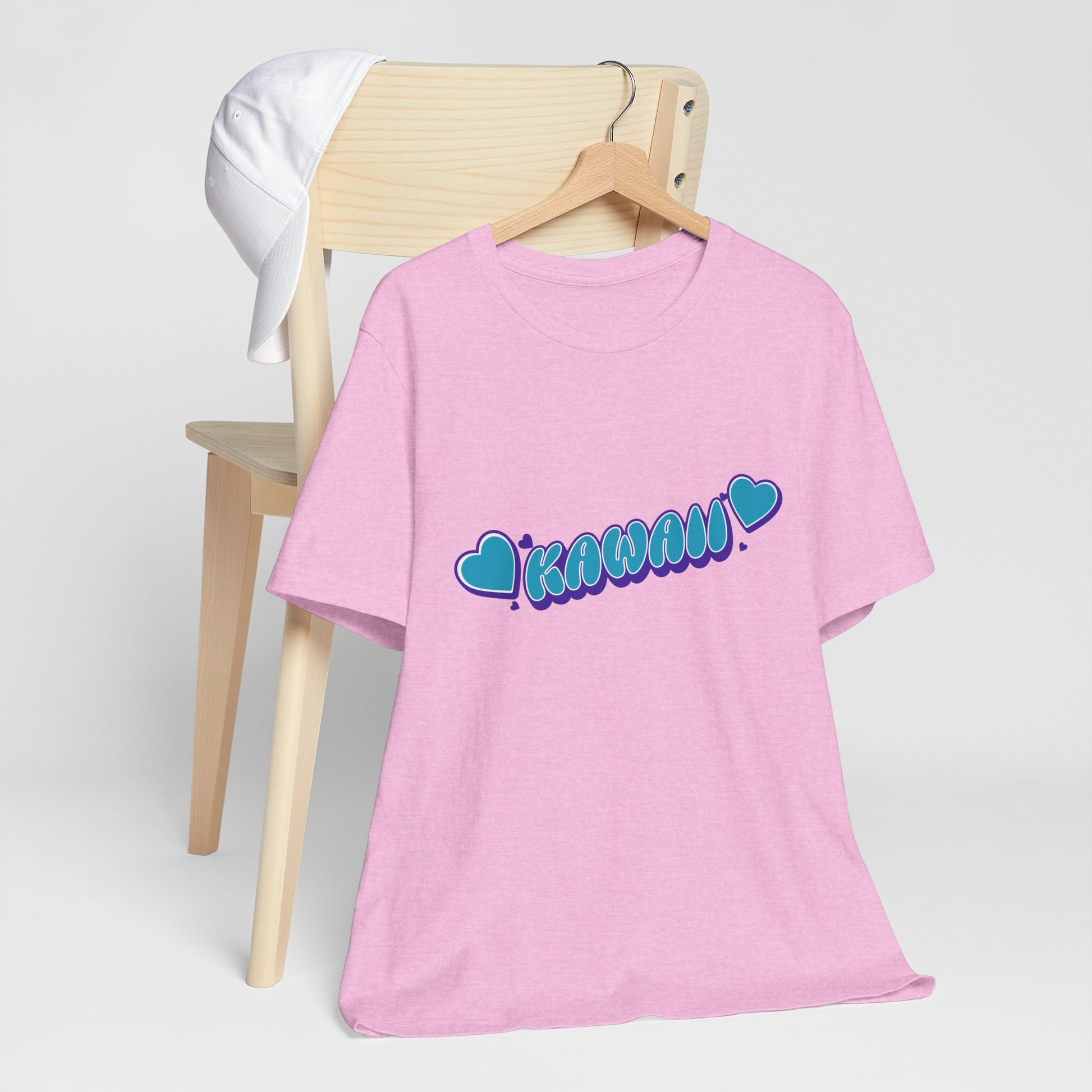 Get ready to turn heads with this ultra-cute KAWAII bubble letter tee! Perfect for lovers of Japanese pop culture, retro vibes, and playful fashion. This pastel pink T-shirt features a bold and bubbly "KAWAII" design in aqua and purple, framed by two adorable blue hearts. It’s the perfect addition to your wardrobe if you love colorful, fun, and expressive fashion.